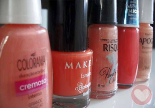 4 - #querousar - Impala (Rebelde) Laranja fluor em um tom vibrante com efeito metálico 5 - Grande Atração - Colorama (Respeitável Público) Coral intenso com fundo rosado