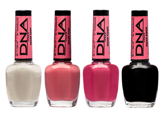 Os esmaltes da nova coleção Sugar Touch, da DNA Italy, são formulados com micropartículas especiais que dão um efeito tridimensional às unhas e textura de açúcar.